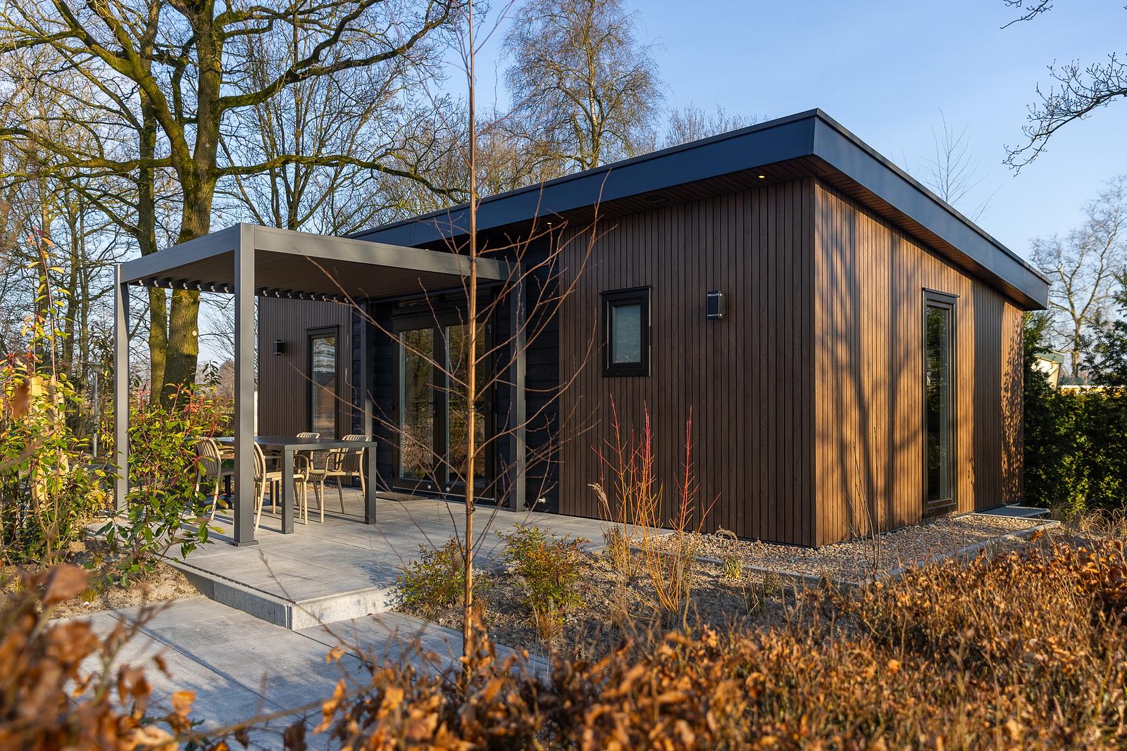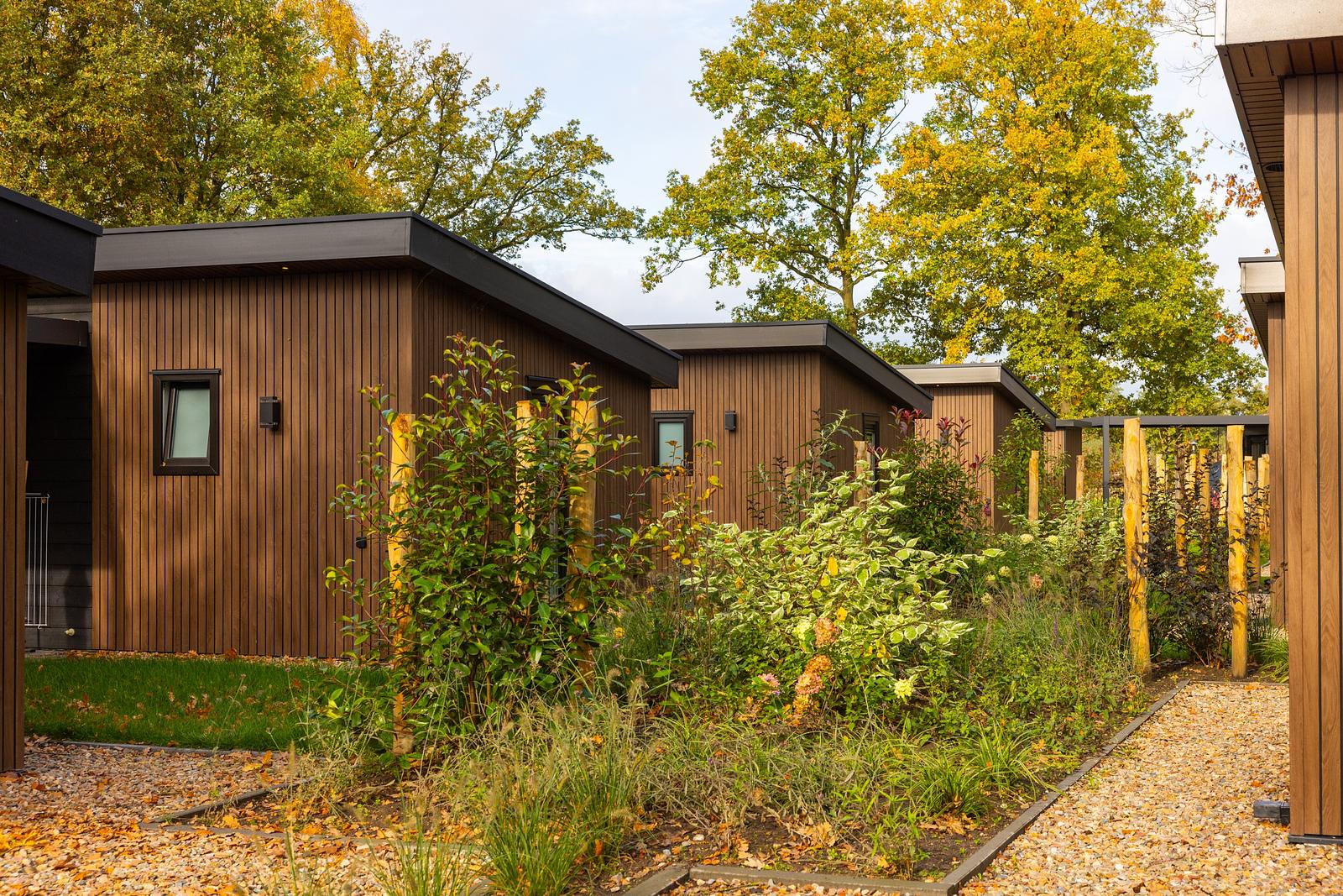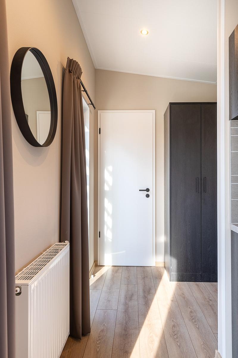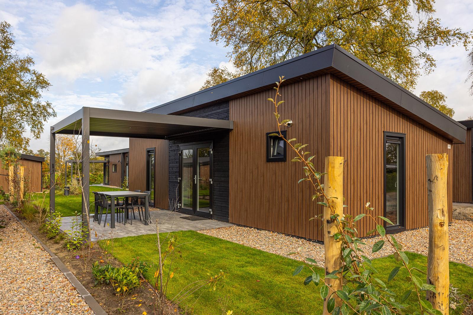 Escape to nature and experience ultimate comfort in our stylish Renshorst holiday chalet. This modern 45 m² chalet accommodates 4 people and combines contemporary design with an open, airy atmosphere thanks to the impressive 3-metre-high ceiling in the living room. Enjoy a bright living area, a fully equipped kitchen, two comfortable bedrooms, and practical amenities such as a separate toilet.